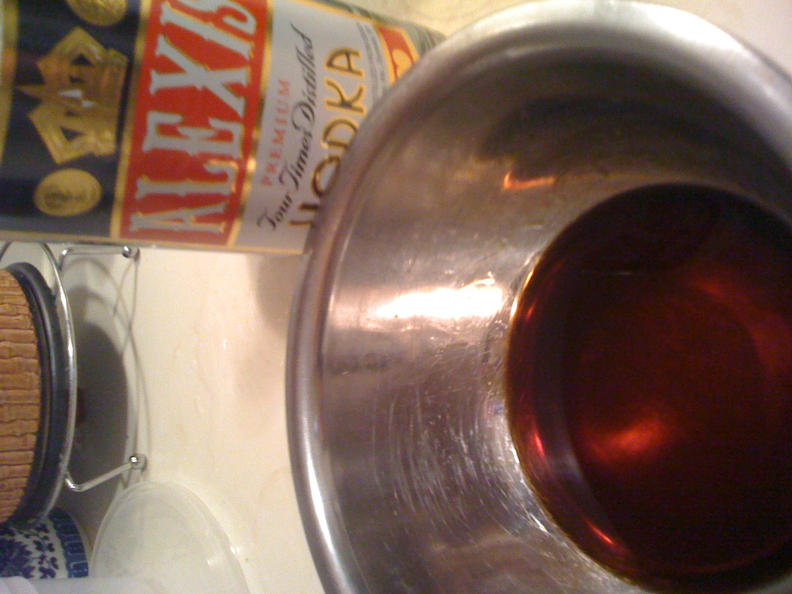 Sake or white wine is also good instead of vodka. I like vodka flavor best for this recipe though.