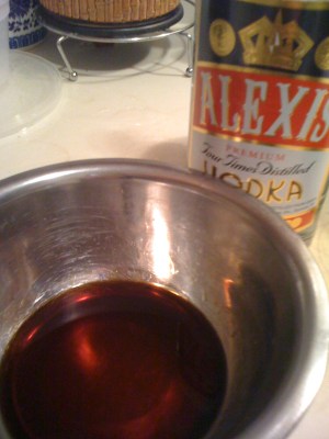2) Mix soy sauce, vodka and sugar in a bowl.
