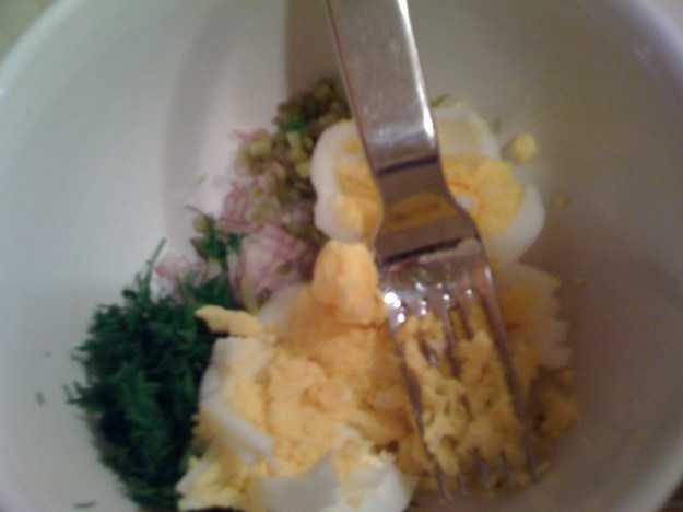 1 hard boiled egg, finely chopped(or crush in a bowl with a fork)