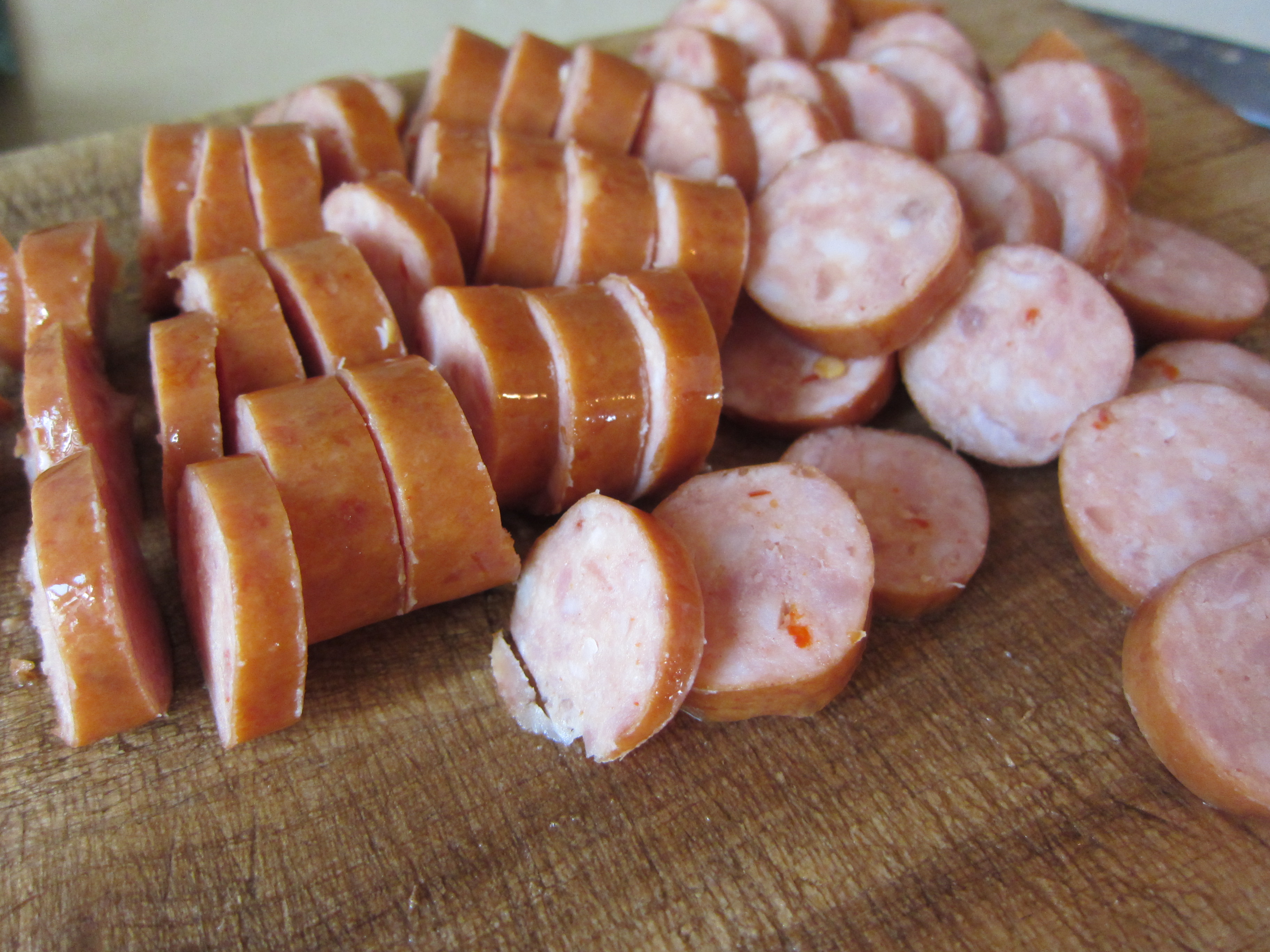 4) In the mean time, coarsely chop the sausage.