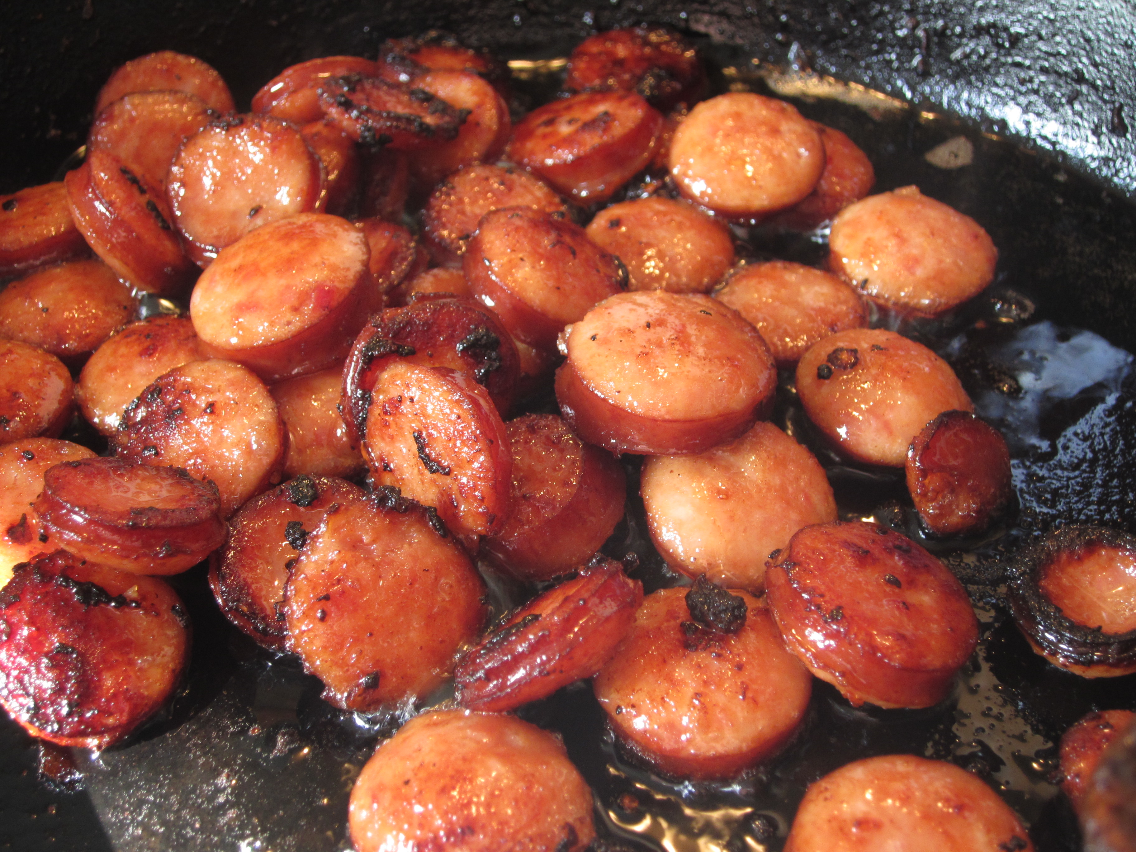 5) Heat a non-stick pan and fry the sausage over high heat.