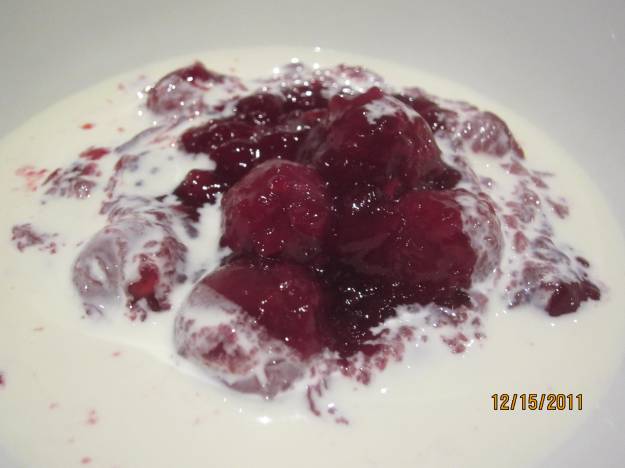 This is a picture of nicely served Rote Grutze by my mother in law. Yummy!