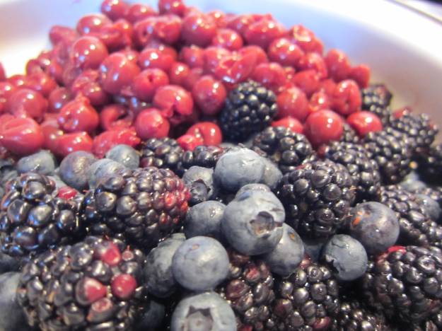 Of course fresh fruits in season are great but you can use frozen ones. I like to use pitted sour cherries in light syrup as well.