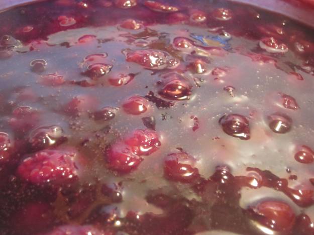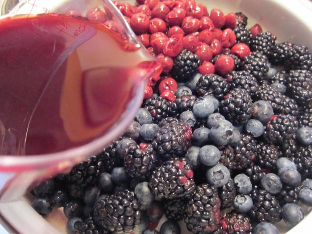 When you use sour cherries in light syrup, use the syrup and reduce the amount of sugar accordingly.