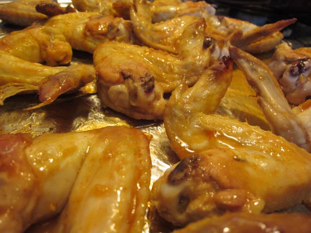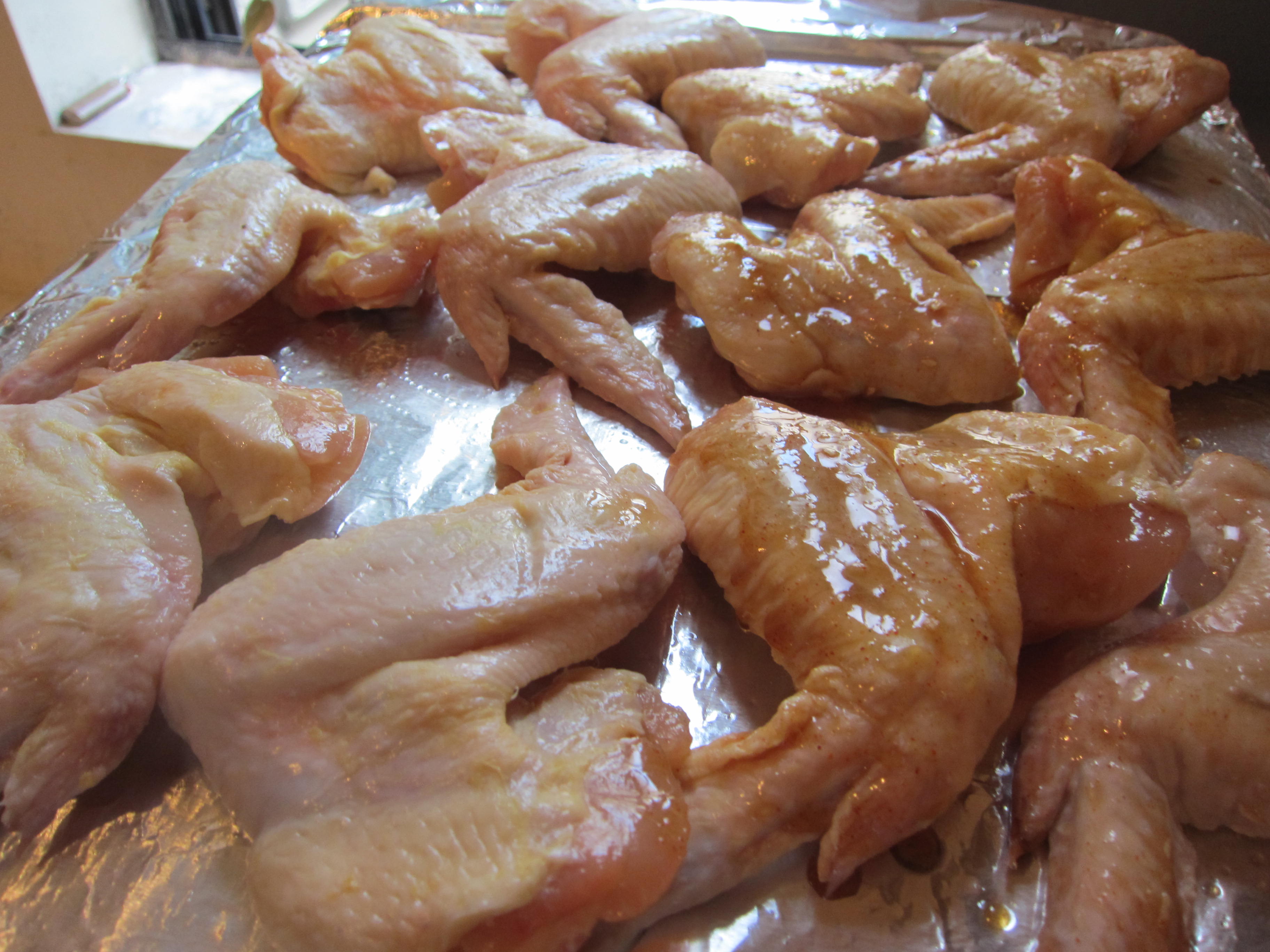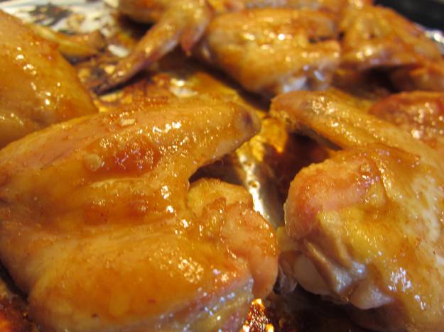 4) Place the wings on the baking sheet and brush sauce evenly.