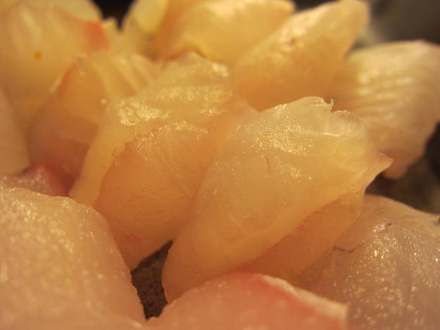 3) After a few hours, the fish meat has whiter color. Drain the liquid.