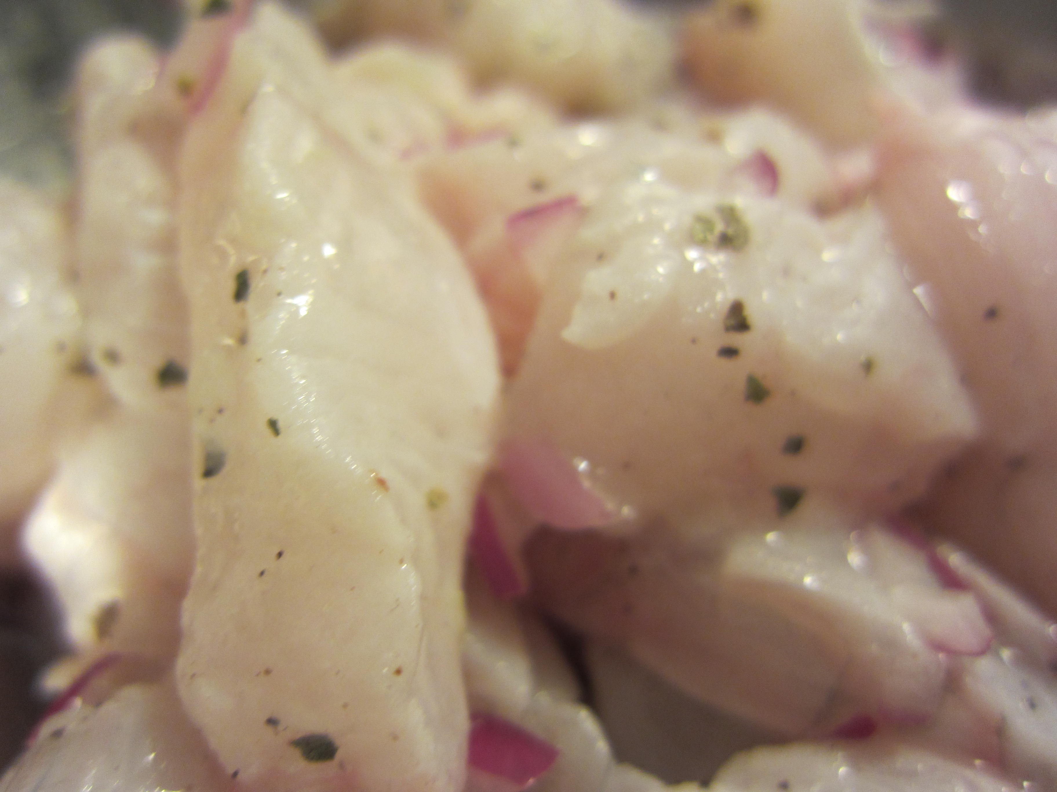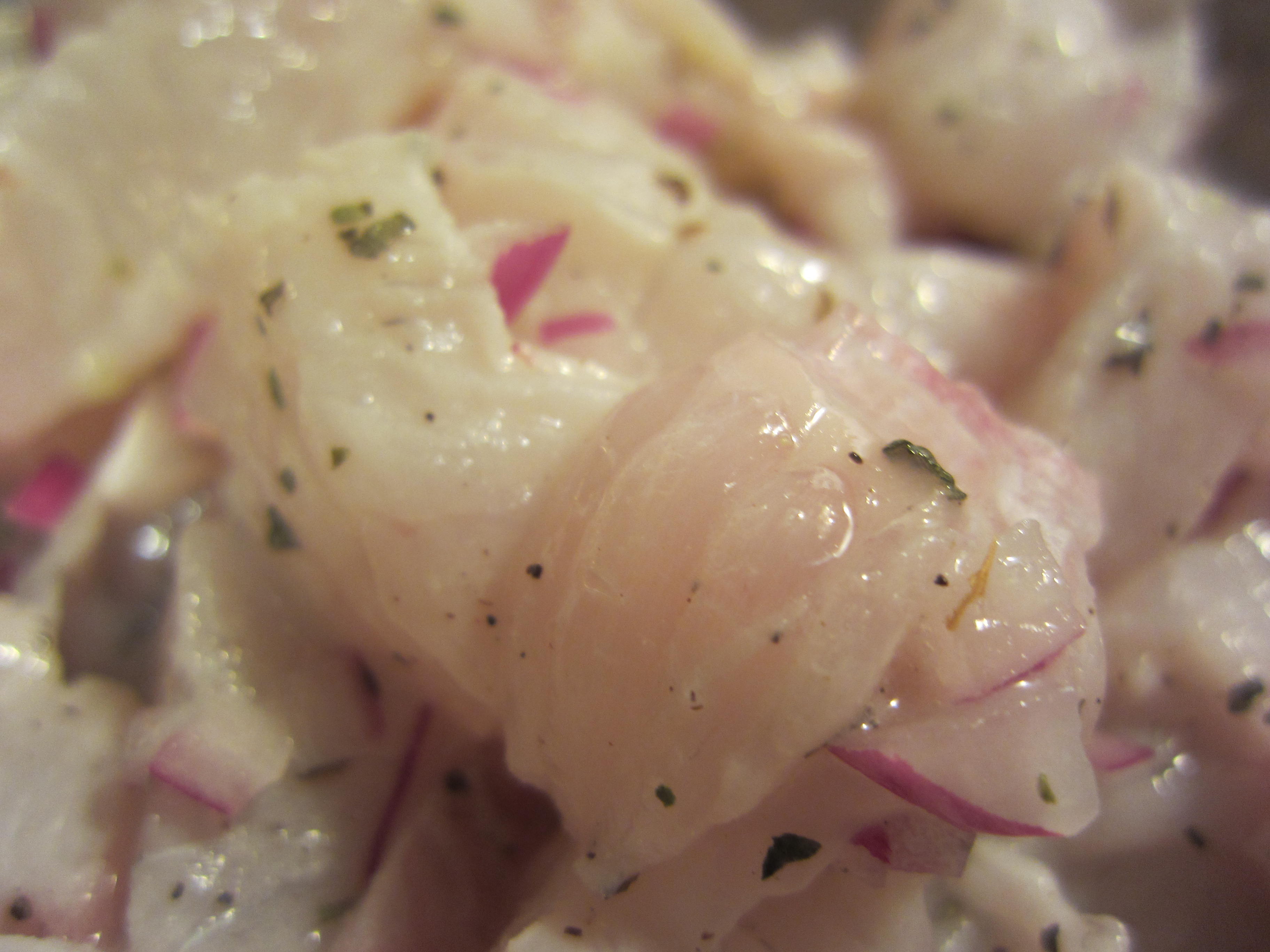 The recipe uses sour citrus juice such as lime and lemon for its citric acid denaturing the protein in the seafood and it changes its texture. Because of this, some people says the lemon/lime juice cooks the fish but this is not true. Although the citric acid somewhat suppresses the growth of bacteria, it does not kill bacteria. So I strongly recommend to use Sushi-grade fresh fish, or lightly boil the fish before marinating.