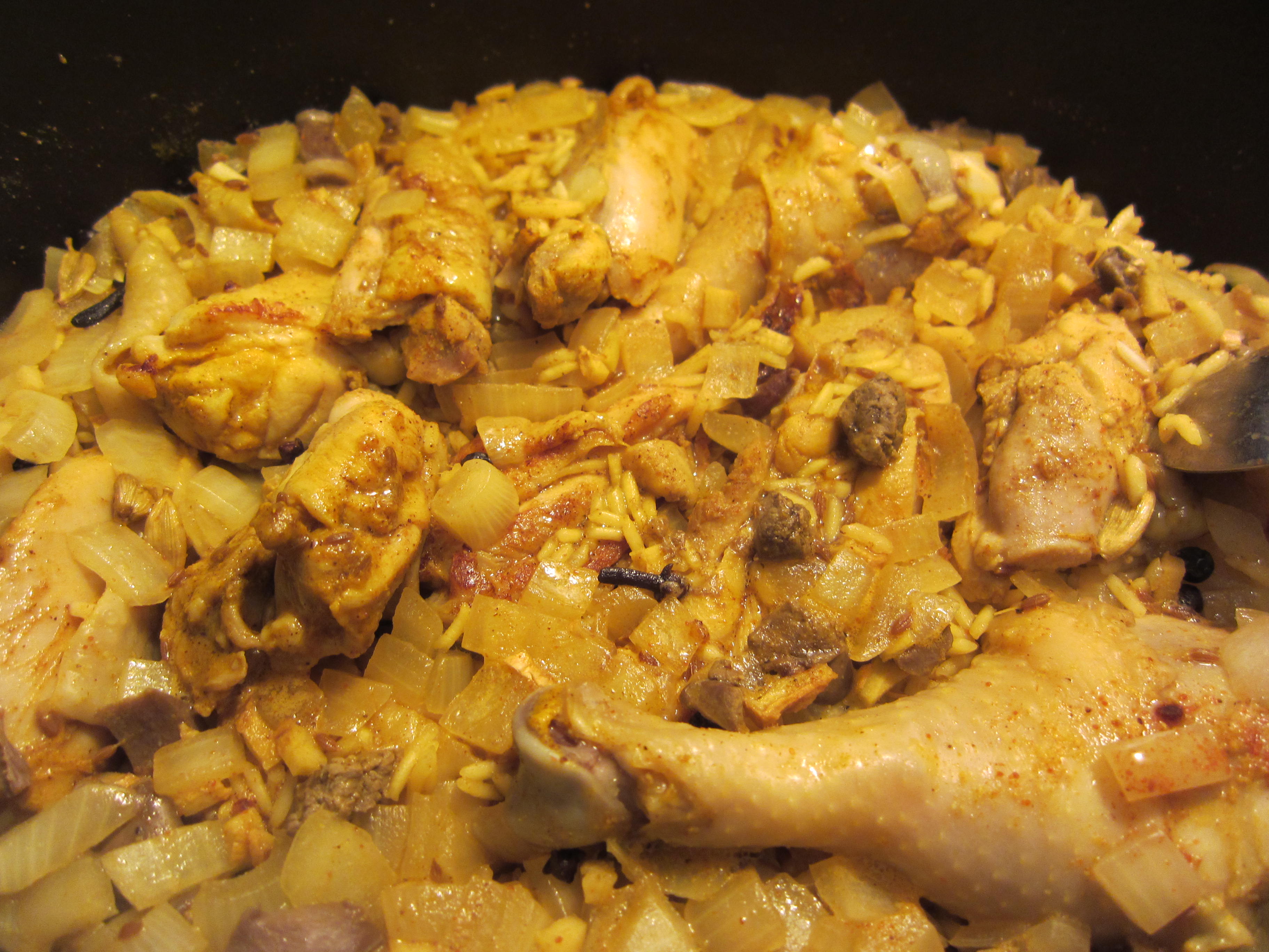 …and used the soup stock and drumsticks and a heart, a liver, and a gizzard for making biriani.
