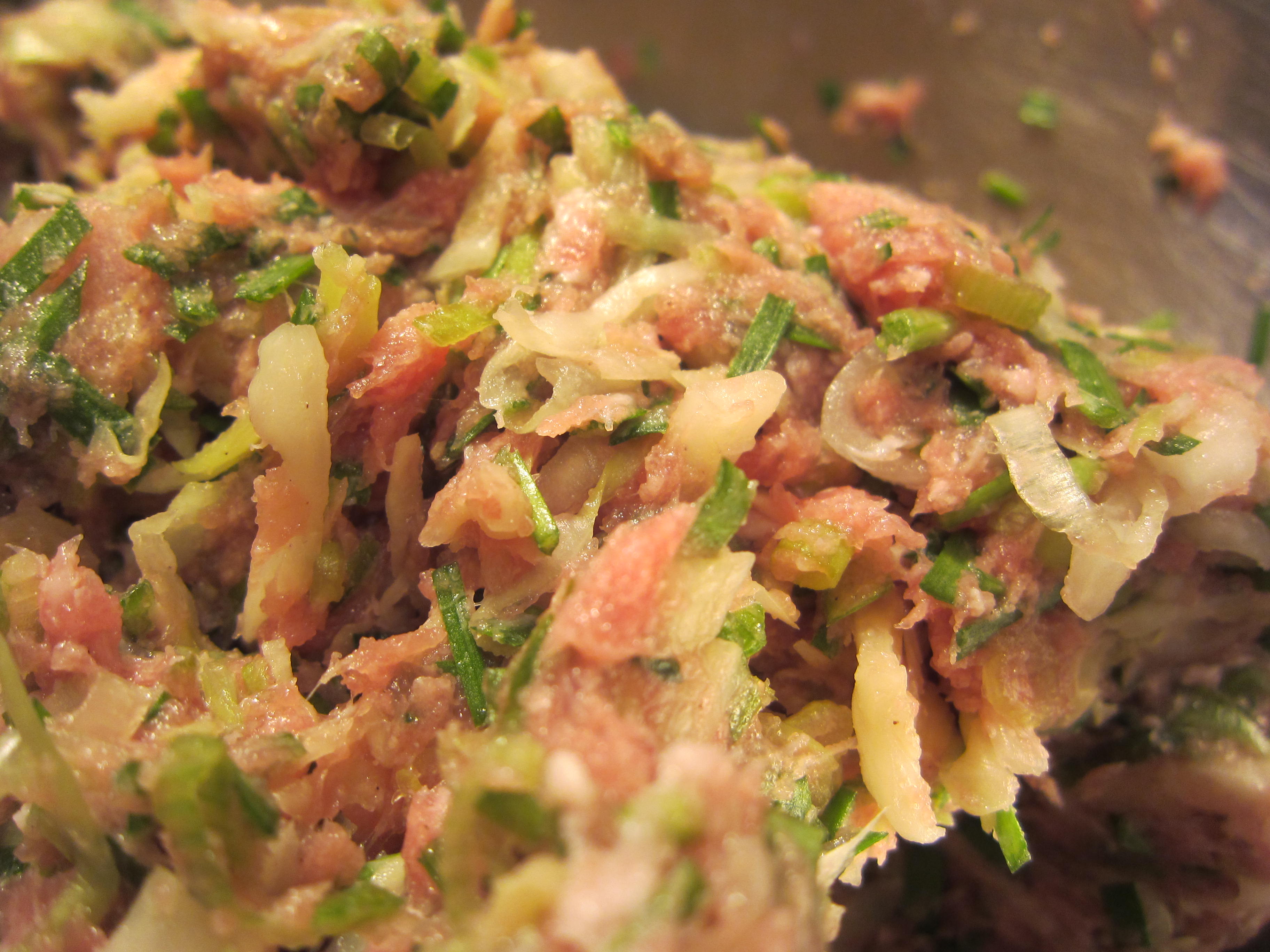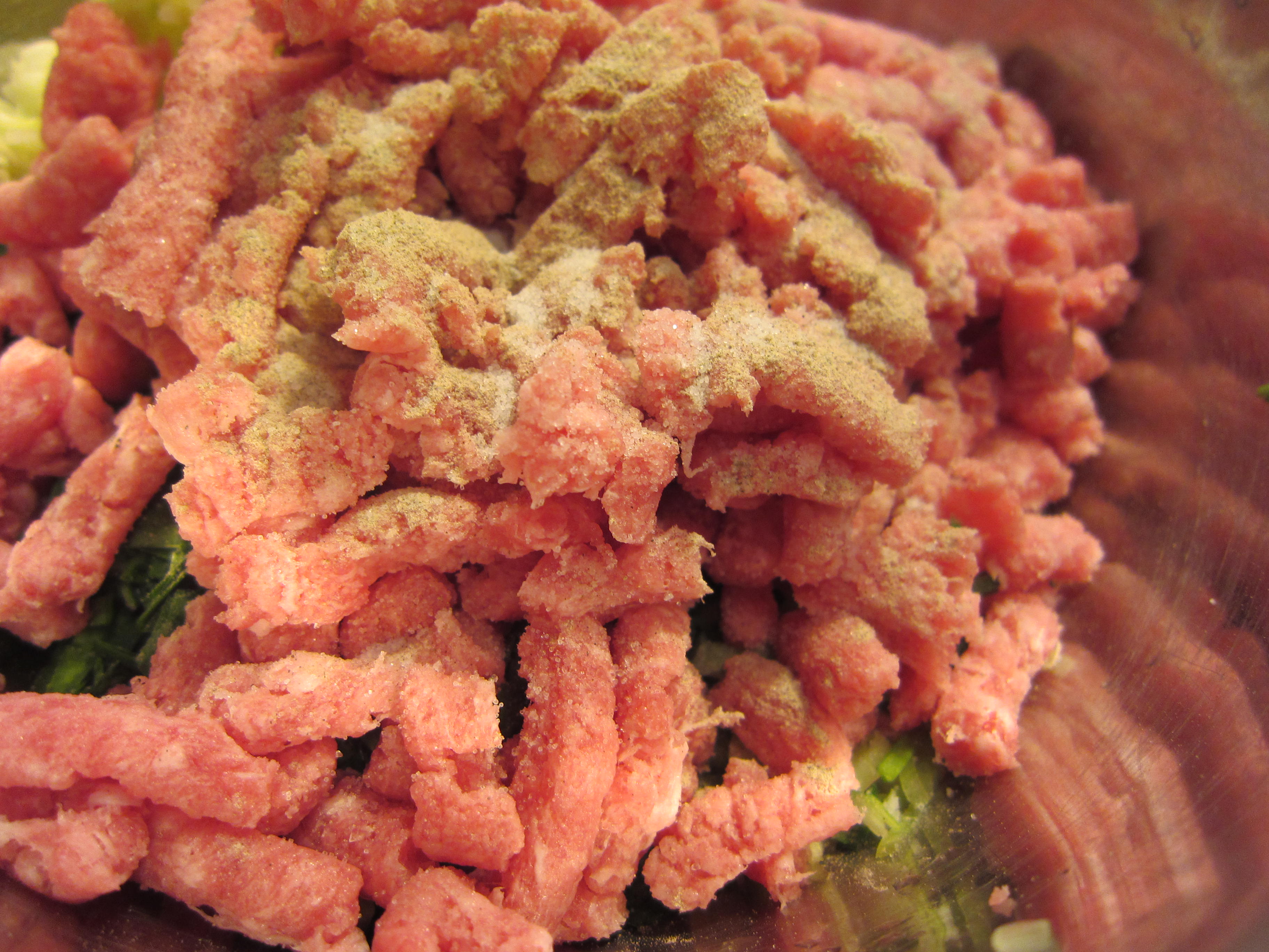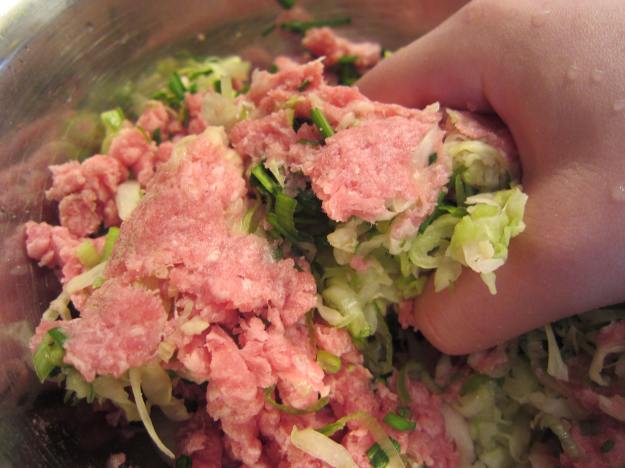 Then add meat, ginger, salt and pepper to the bowl. Some like to add soy sauce, sake or garlic for more flavor.
