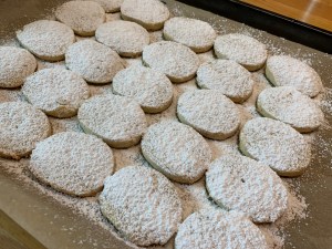 8) Remove them from the oven. Shift powdered sugar over the cookies while they are still warm. Let them cool.